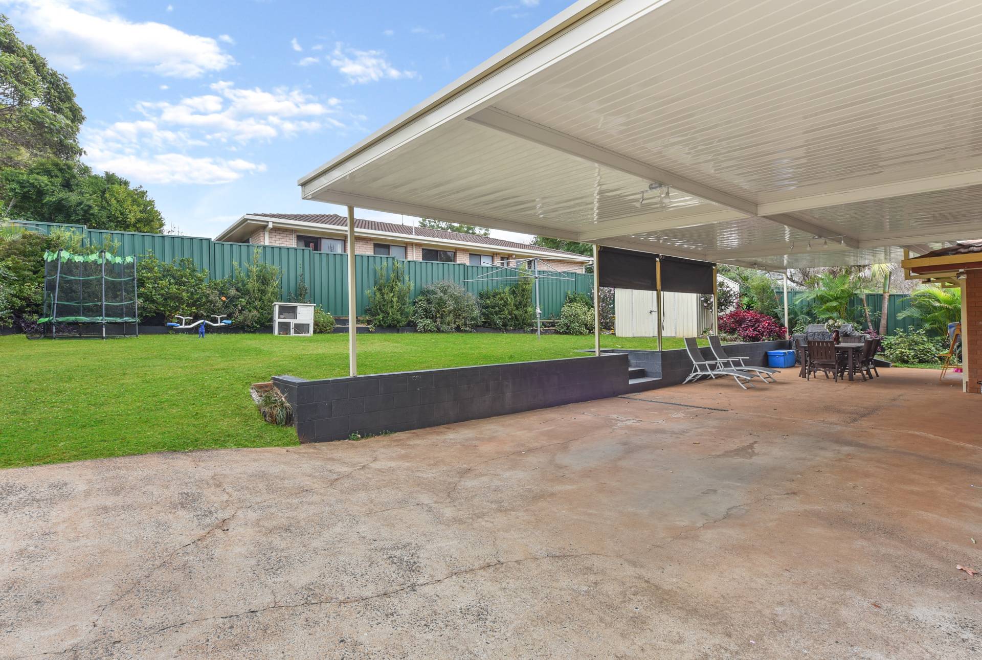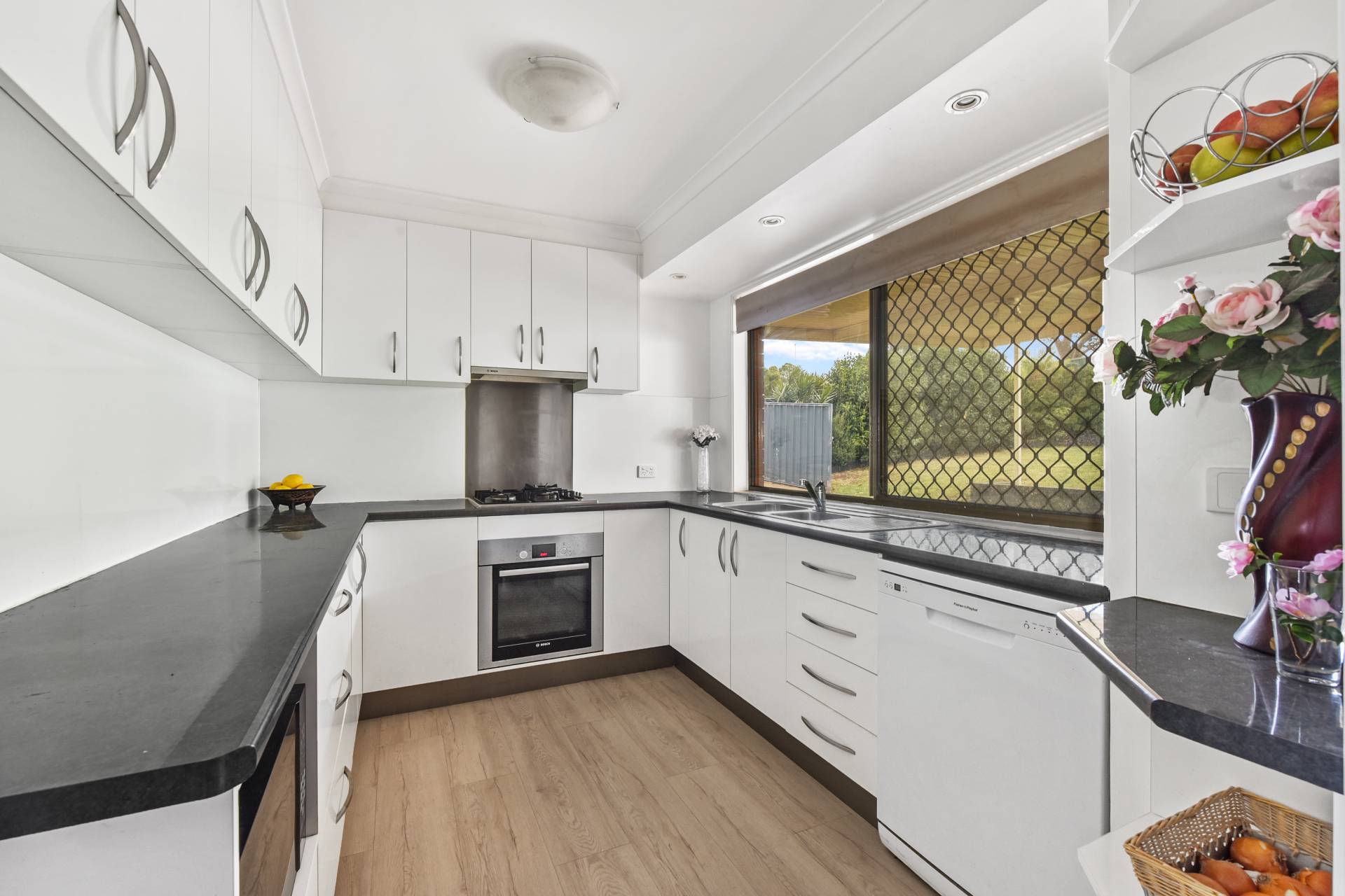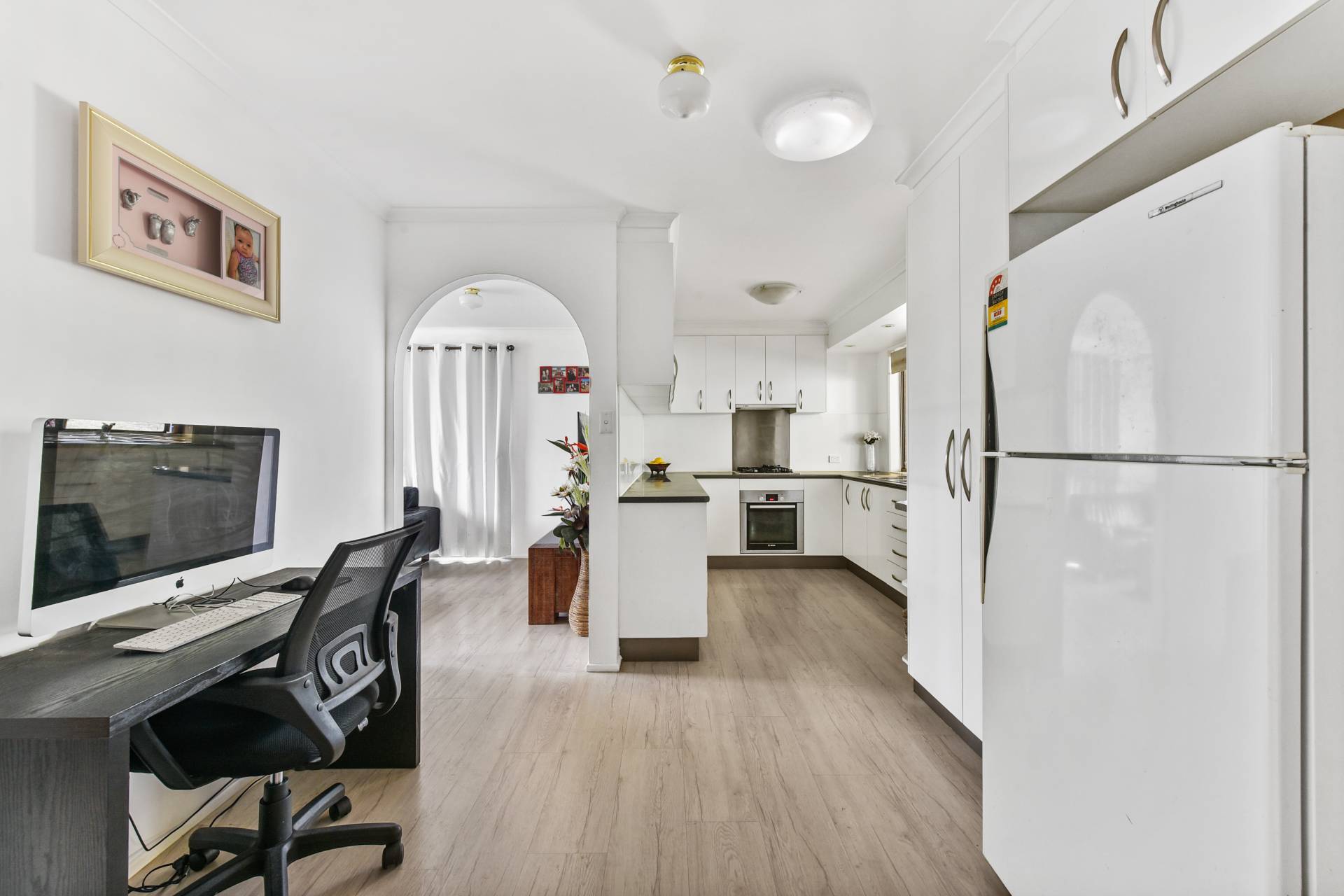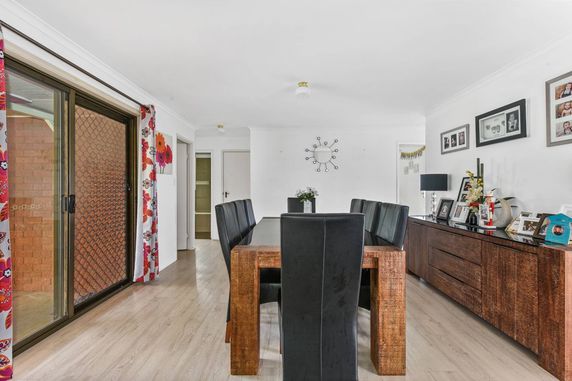 The charm of the home is the updated kitchen and large dining space and living area. The L-shaped living area is located at the entrance of the home and offers an appealing easterly aspect across Ballin Park. The dining area is plentiful in size, currently home to an 8-seater dining table and an office nock which leads into the U-shaped, updated kitchen. The kitchen, which looks out to the yard and outdoor entertaining space, is well equipped with ample cupboard space and natural gas cook-top and dishwasher.