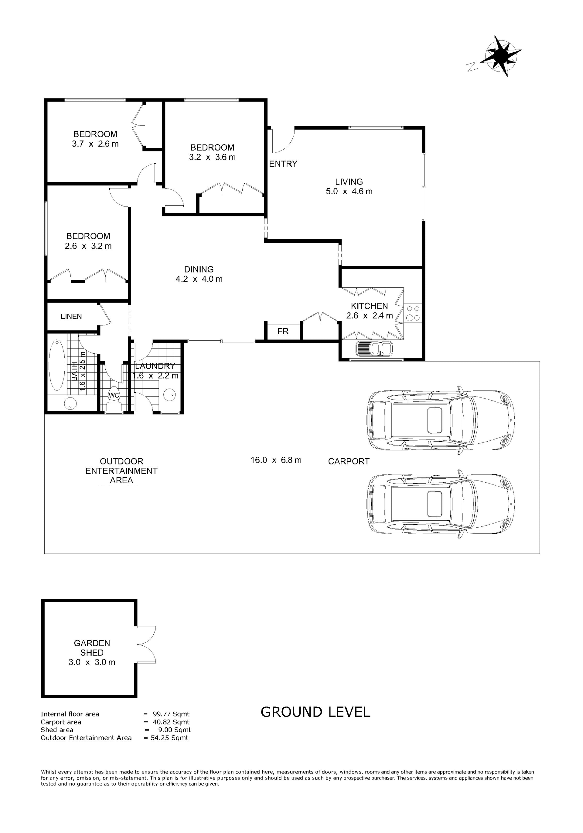 The feature outside the home is the large covered outdoor entertaining space, which forms part of the covered double carport. This space overlooks the yard and has easy access into the dining and kitchen areas of the home. The entertaining space is large enough for an outdoor dining table and lounge area and is well lit and powered. Retractable blinds have been installed for year-round use.