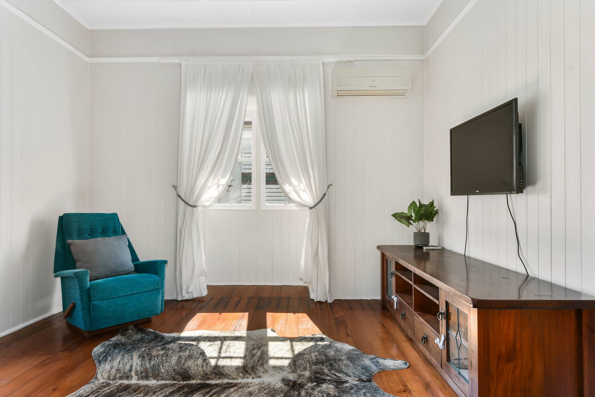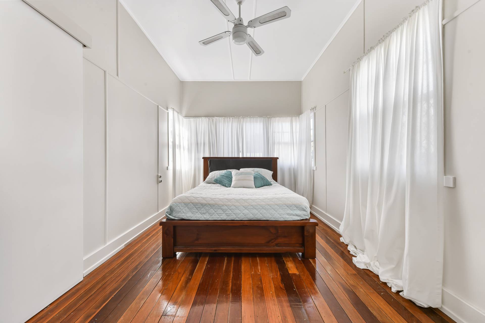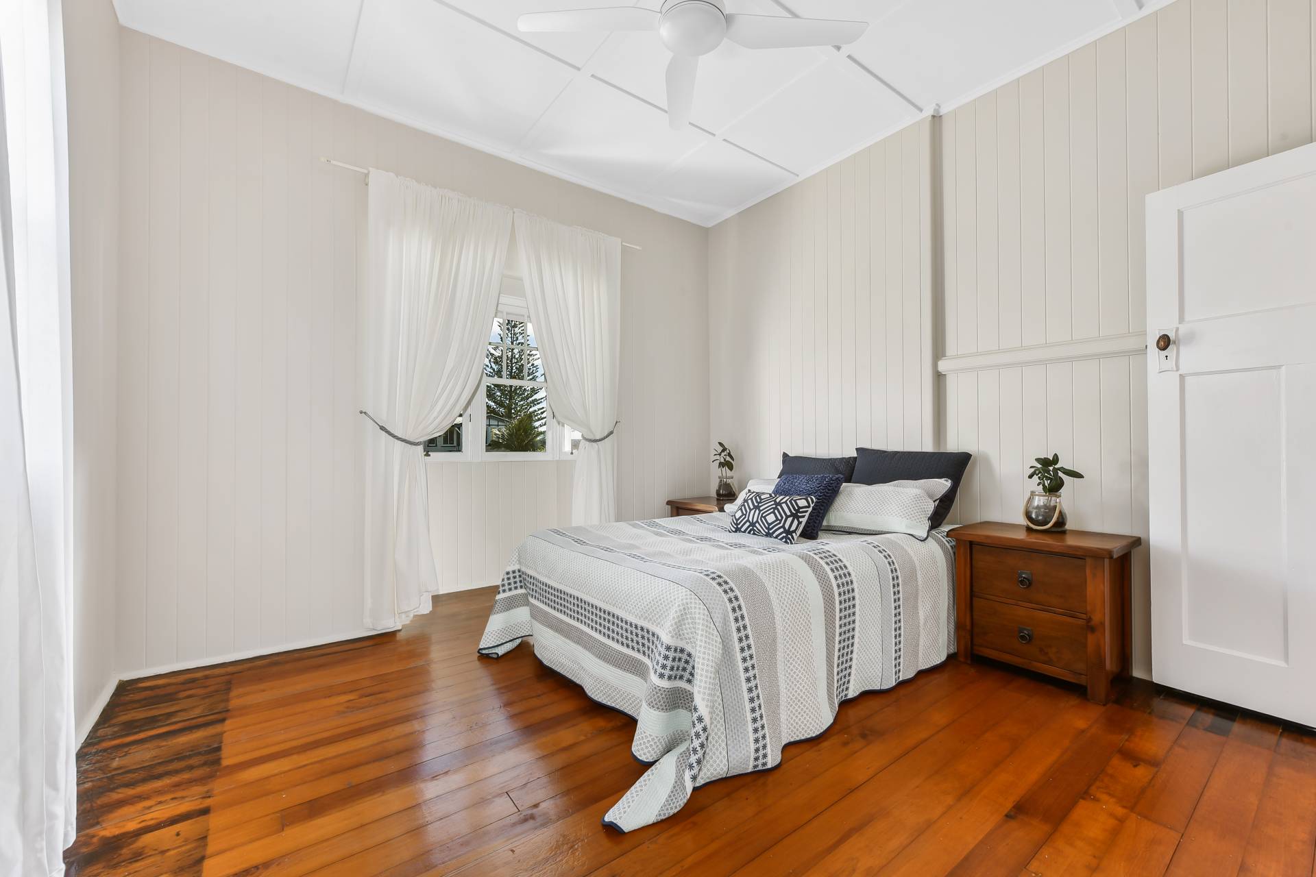 The 3 large bedrooms are all with ceiling fans, timber floors and character VJ walls and high ceilings, only one with cupboards, however the two remaining rooms are large enough to include cupboards or built ins. The updated bathroom has a shower-over-bath, single vanity and toilet.