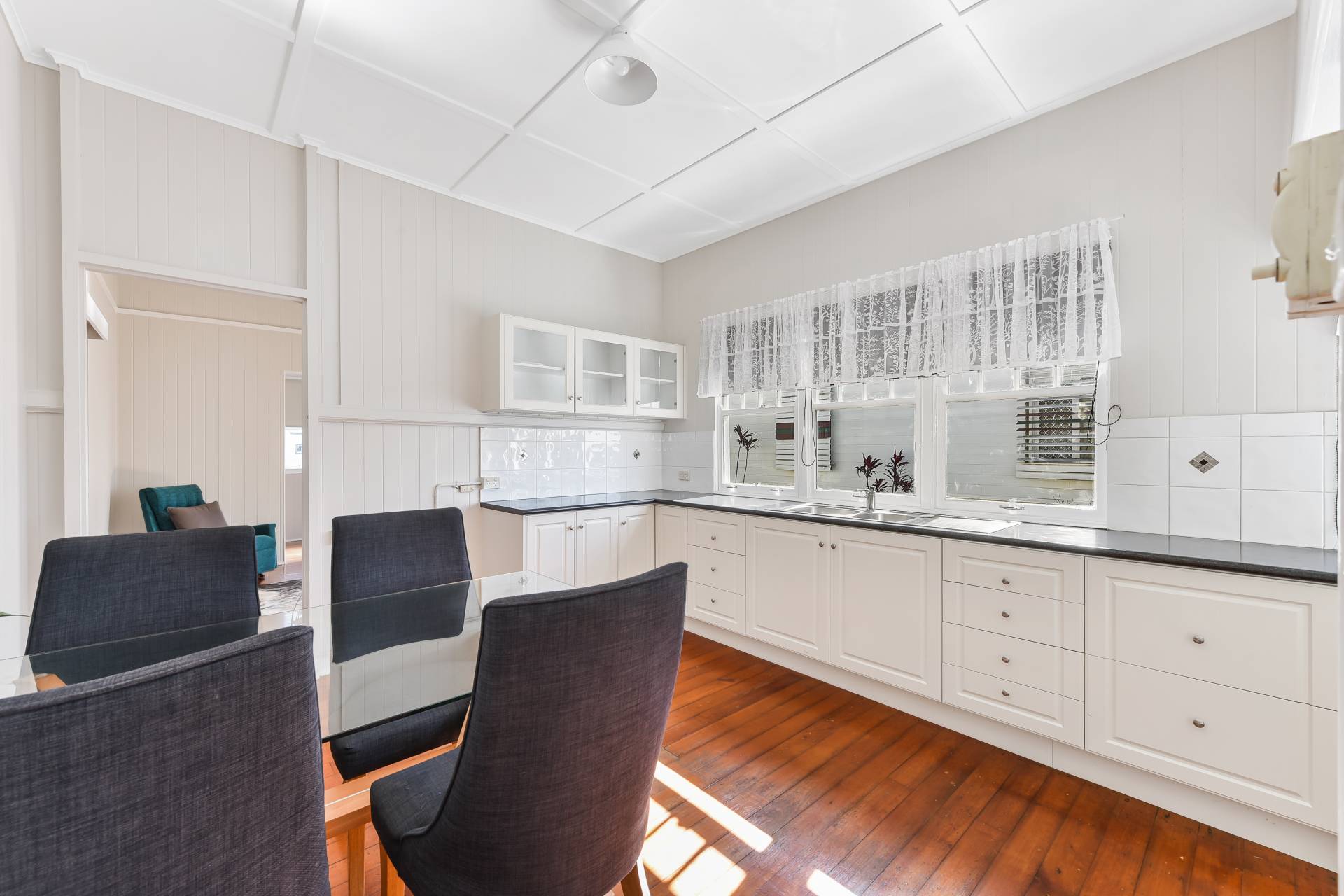 The light-filled, eat-in kitchen has ample storage, lovely North-facing windows and is also updated. The layout of the home is versatile and has the opportunity to reconfigure to allow more of an open plan living and dining space.