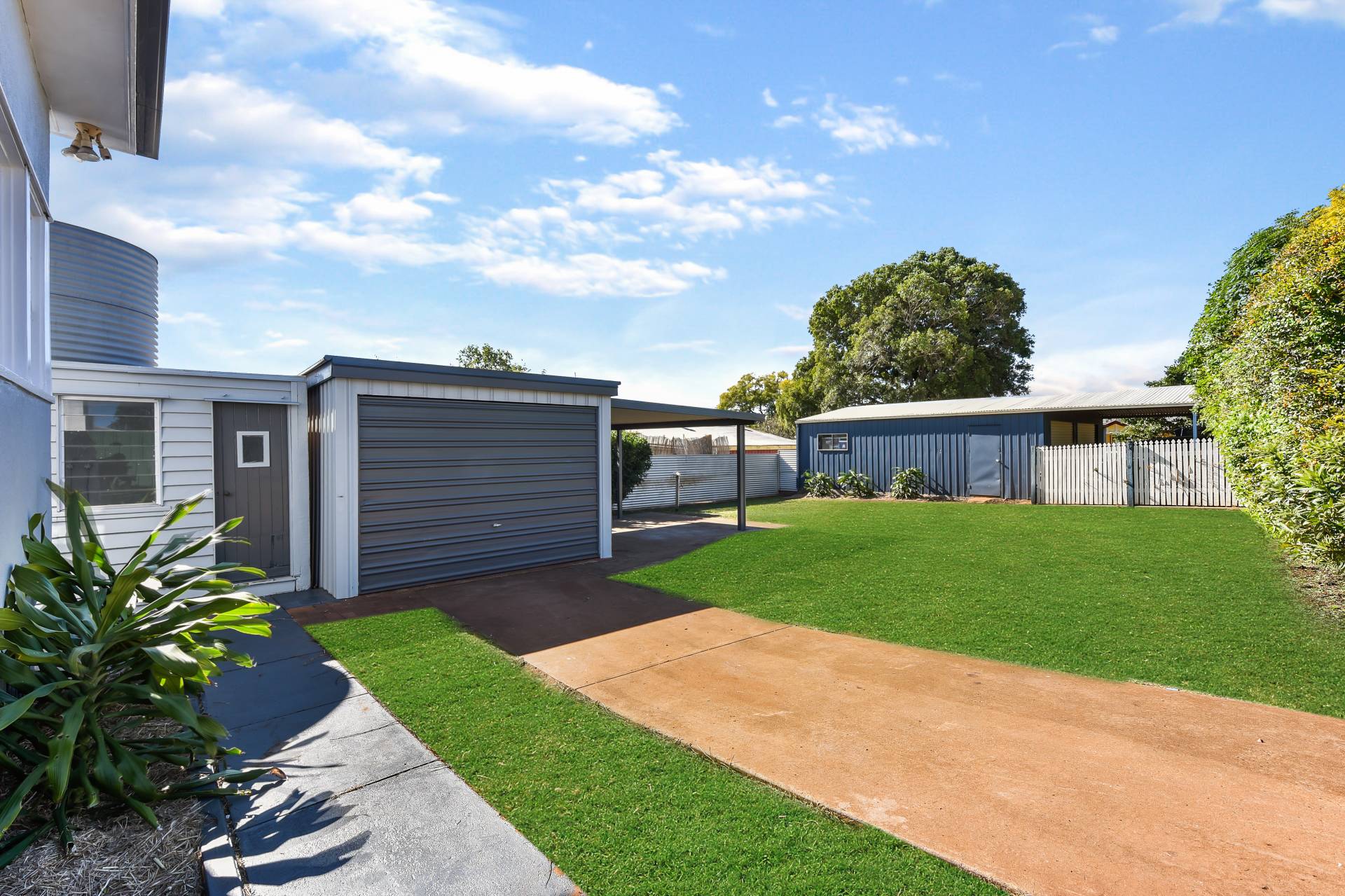 Outside there is the laundry and also a second toilet, single lock-up garage (perfect for a studio or large garden shed), covered outdoor entertaining space and also a massive 7 x 8mt powered double garage with additional double carport. There is a large grassed area between the house and garage, and the front and rear of the yard are fully fenced. Access to the yard and also the double garage is via Dunne Street.