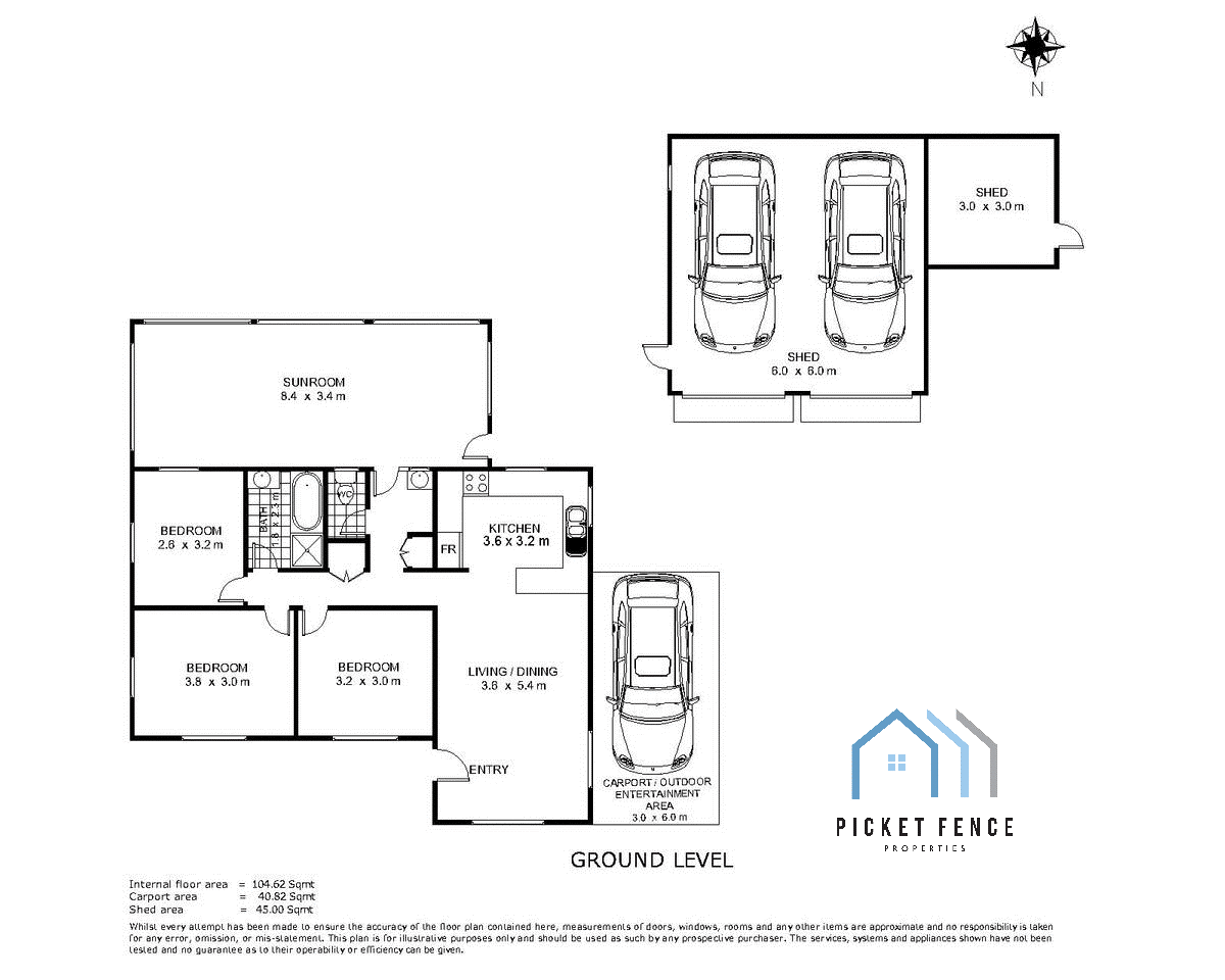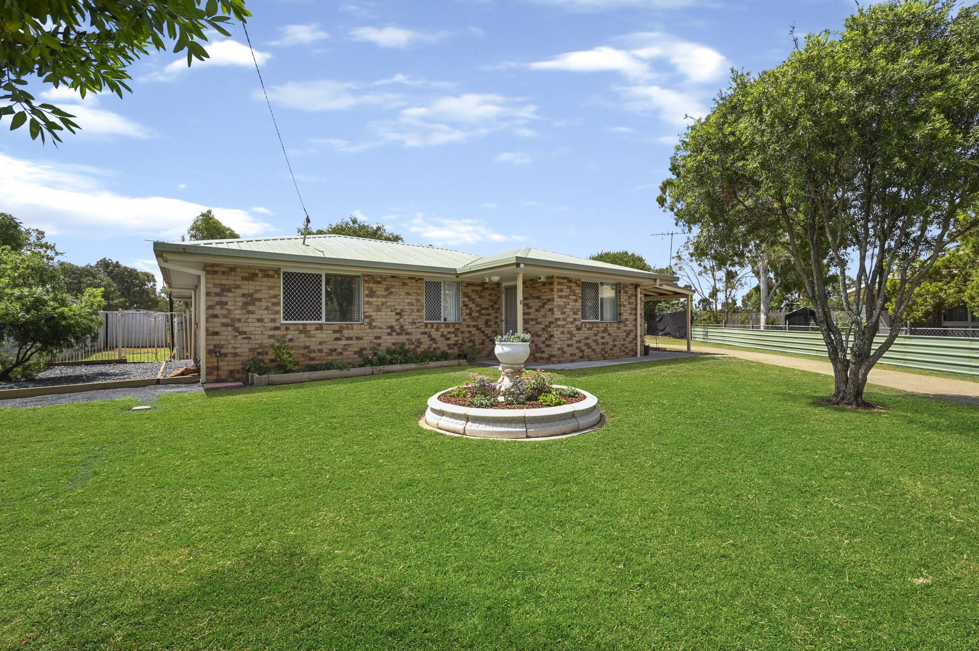 The large 950 sqm block affords ample space for play and pets and a double Colourbond lock-up powered garage (6m x 6m) and an additional 3m x 3m garden shed. The yard is fully fence with established gardens and trees and backs onto the rear of the primary school (not neighbours). There is also a recently cemented single carport adjoining the house that could be used for an outdoor entertaining space with access to the living/dining area.