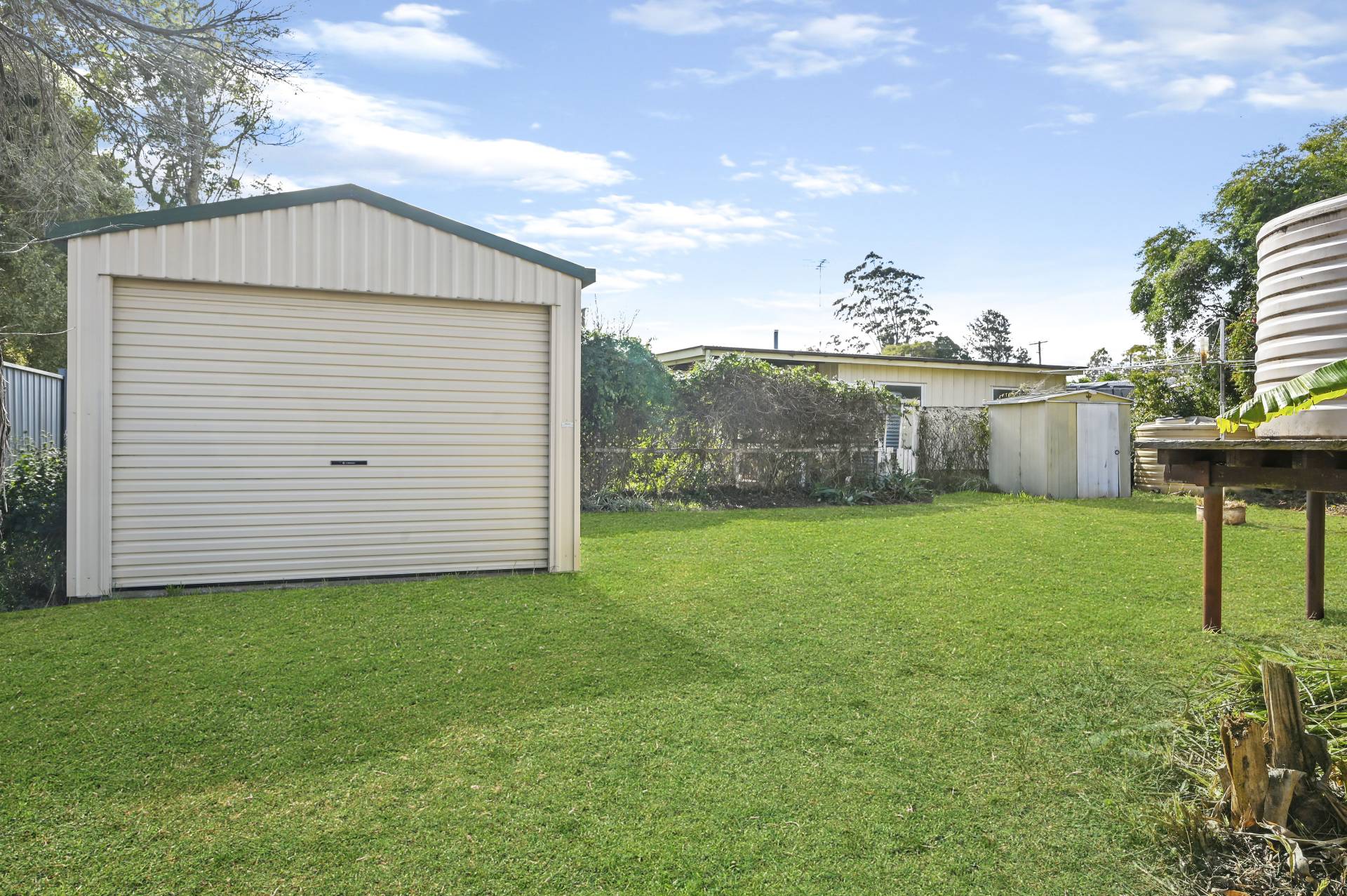 Outside is an over-sided single garage (remote door) with powered workshop at the end which leads to a small covered outdoor space overlooking the backyard. There is a recently built single powered garage in the rear corner of the block and there is side access to the rear of the yard with access to the single garage.