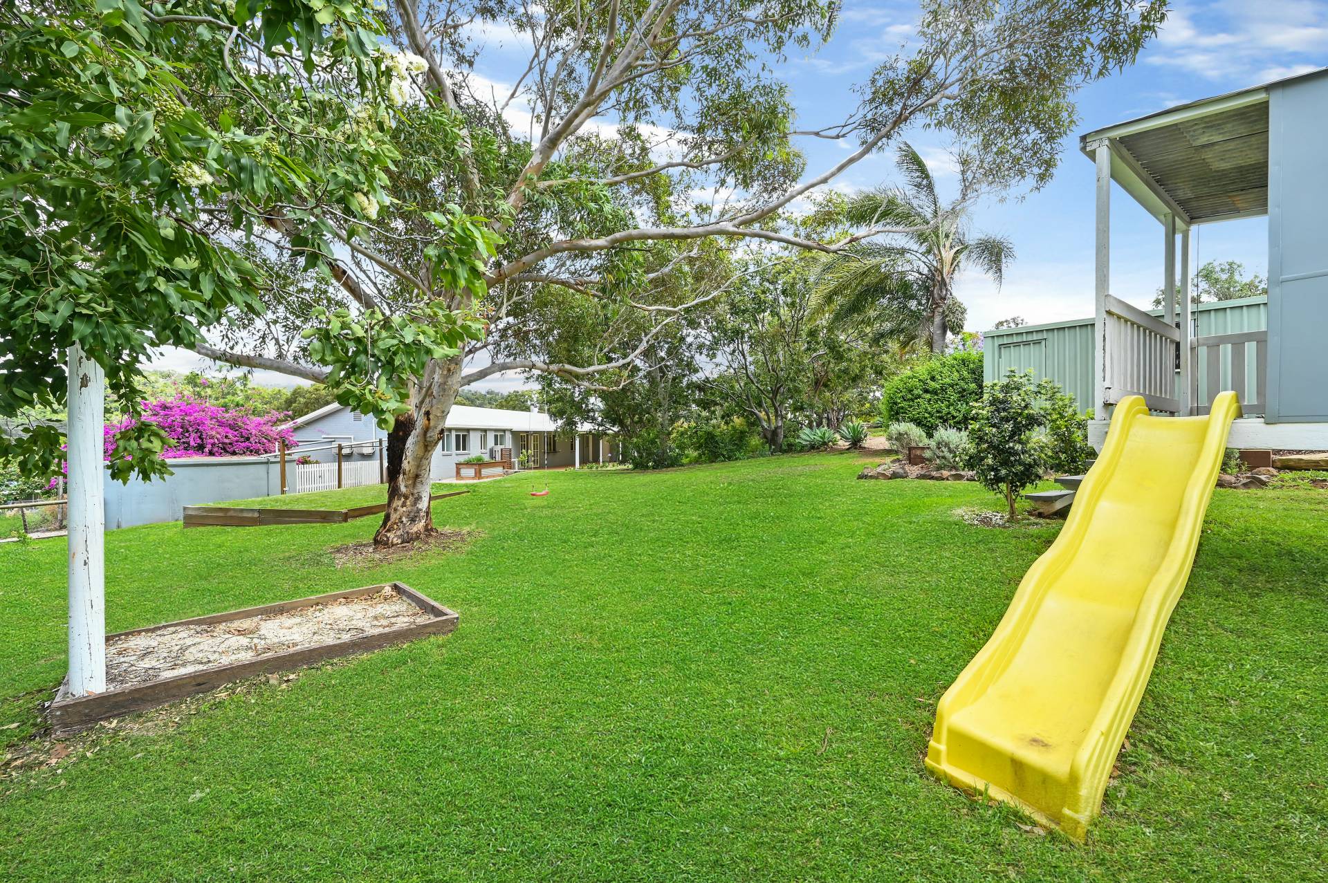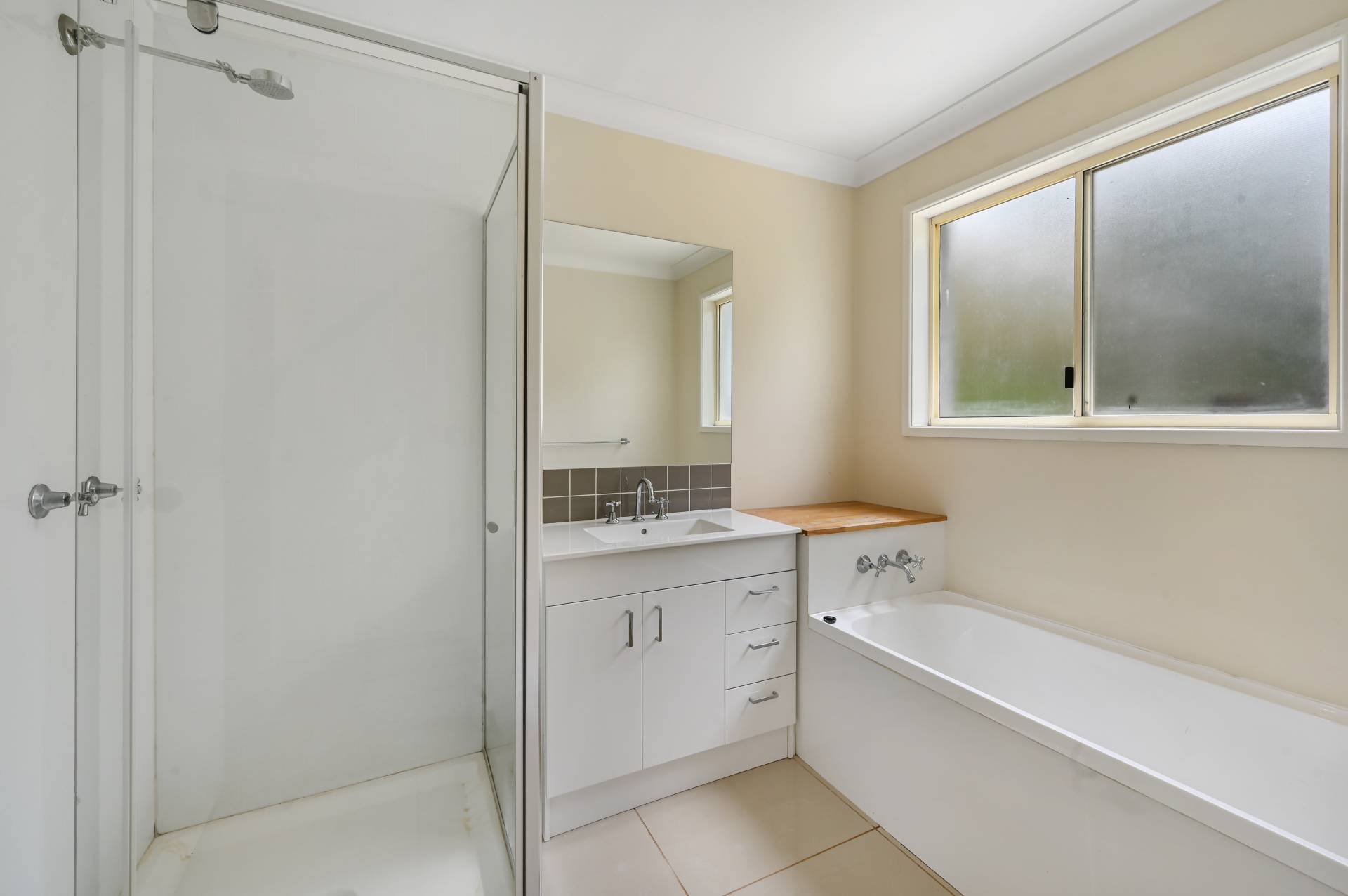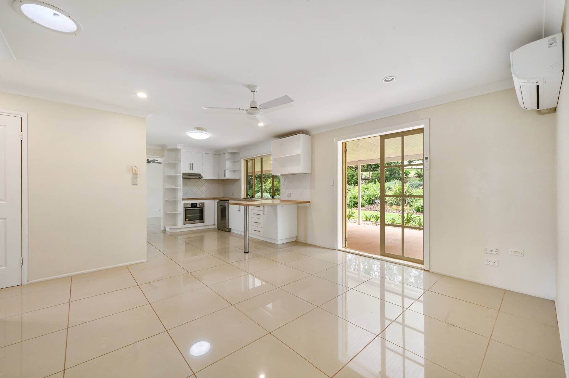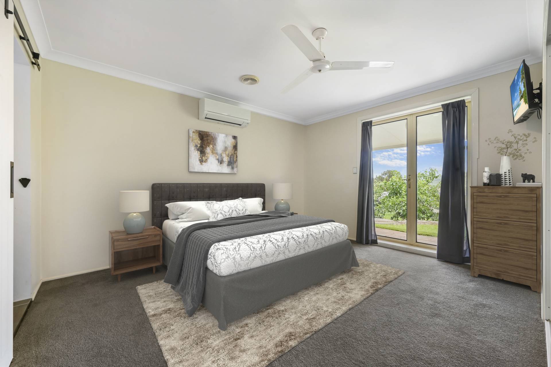 Set on an impressive elevated landscaped 1-acre block, this spacious family home has 3 good-sized bedrooms and a smaller 4th bedroom, nursery or office. All bedrooms have built-in cupboards, ceiling fans and the air-conditioned main bedroom with recent ensuite (walk-in shower, vanity and toilet).
