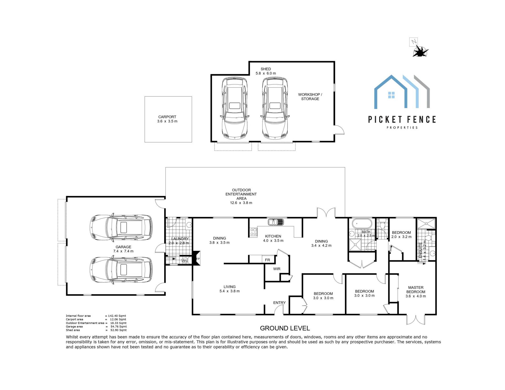 There is also an over-sized double garage attached to the house with internal access and power – large enough for 2 cars and a workspace.