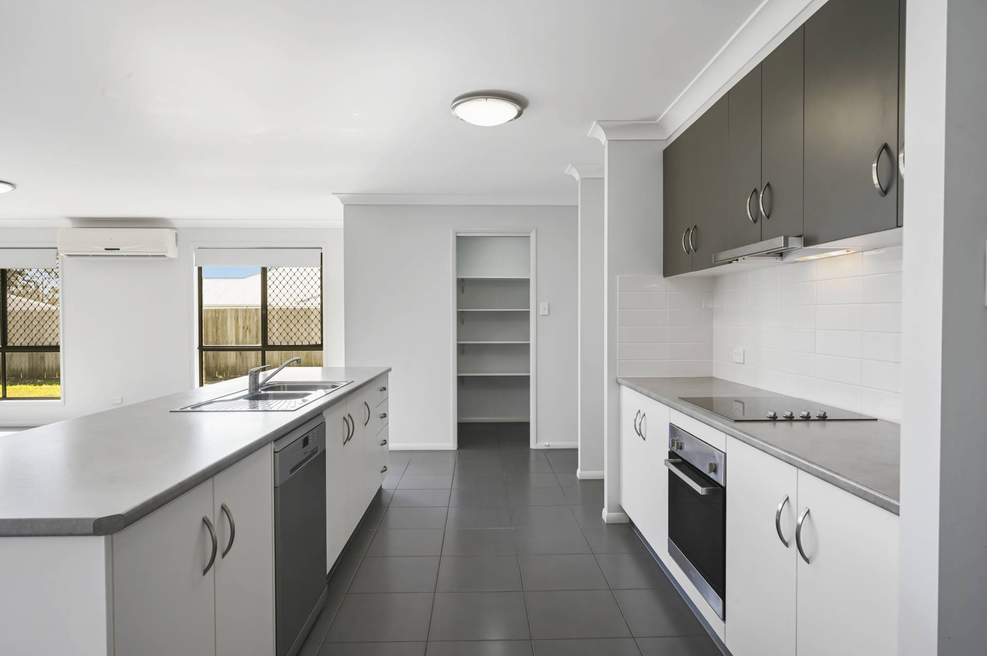 Inside boasts 4 bedrooms, the main with walk-through his and hers robes that lead to the ensuite (shower, toilet and large single vanity). Across from the main bedroom is the air-conditioned second living area. This leads to the open-plan kitchen/living/dining area, that is large enough for a variety of configurations. The galley kitchen has an electric oven and cook-top and the dishwasher is under the large island bench that is suitable for additional seating/dining space. There is also a walk-in pantry that offers an abundance of storage.