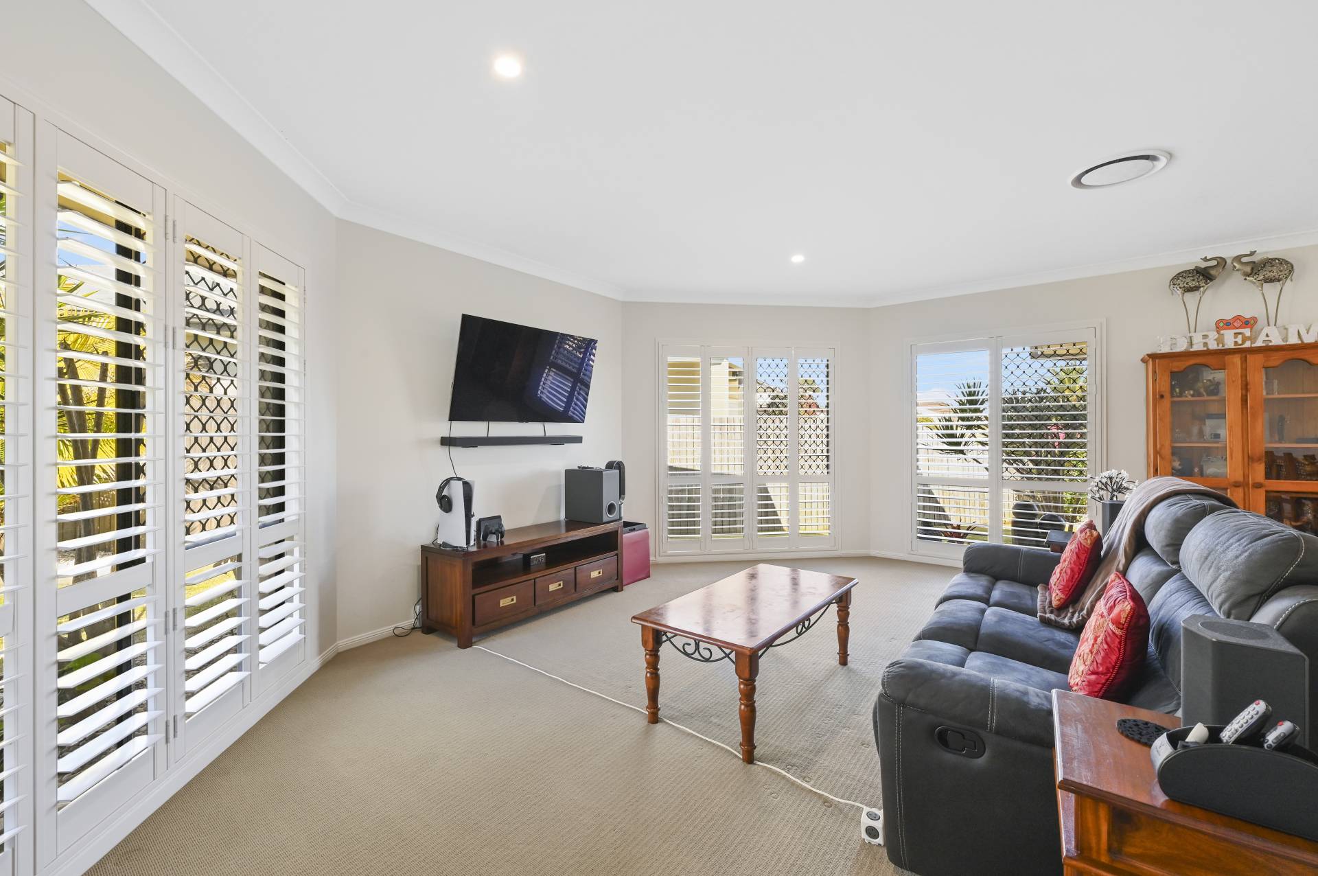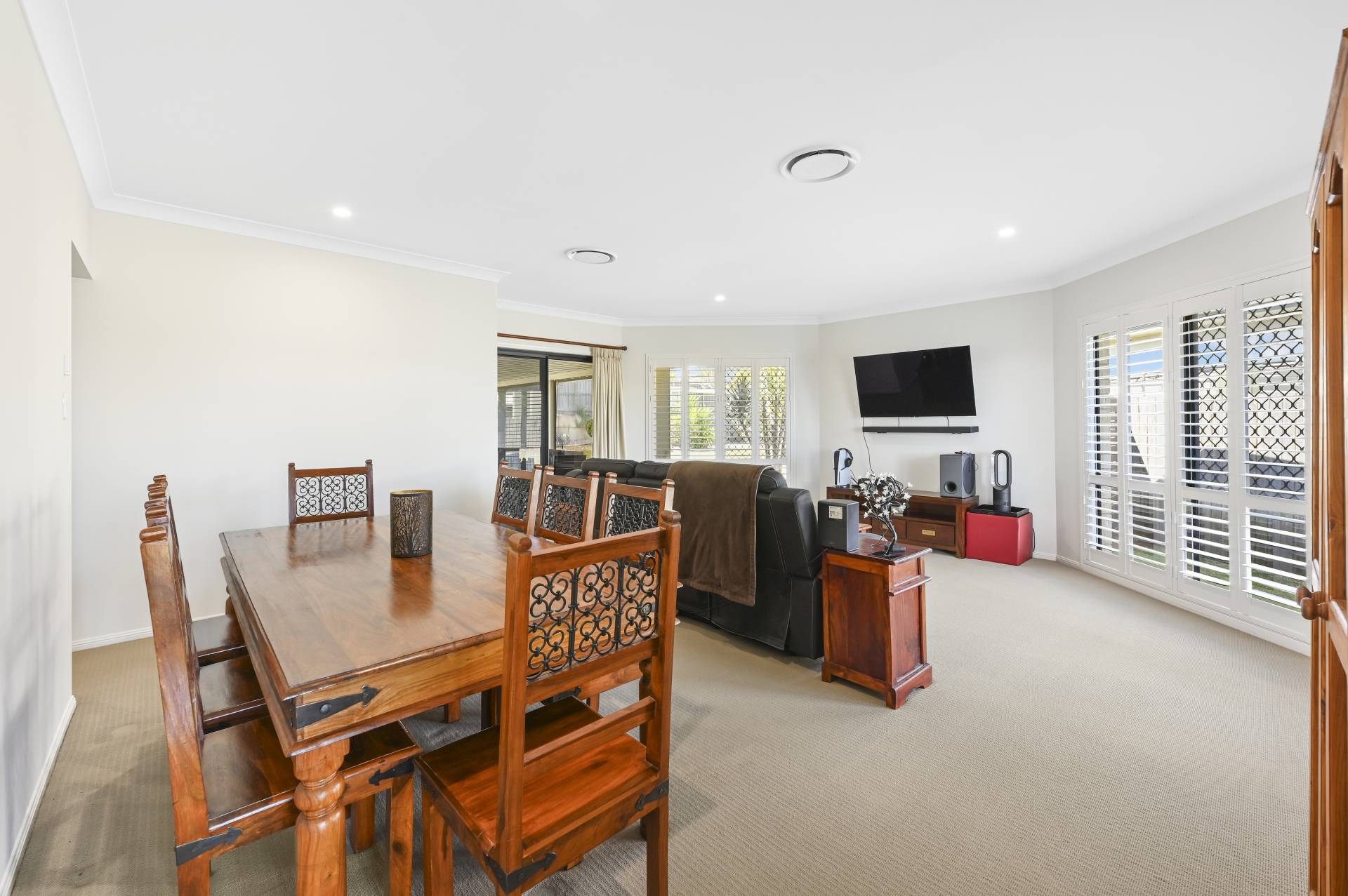 This appealing 4-bedroom home is well designed with neutral tones throughout and a layout that affords a flexible configuration. On entry you will be impressed by the large formal lounge and dining area with an abundance of natural light by the 3 large windows all with quality plantation shutters and sliding glass door with access to the outdoor dining space.