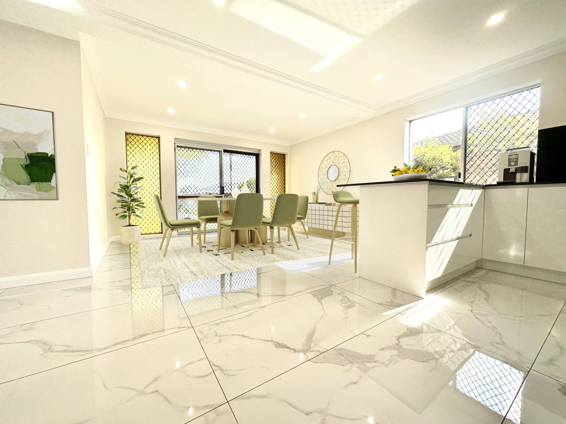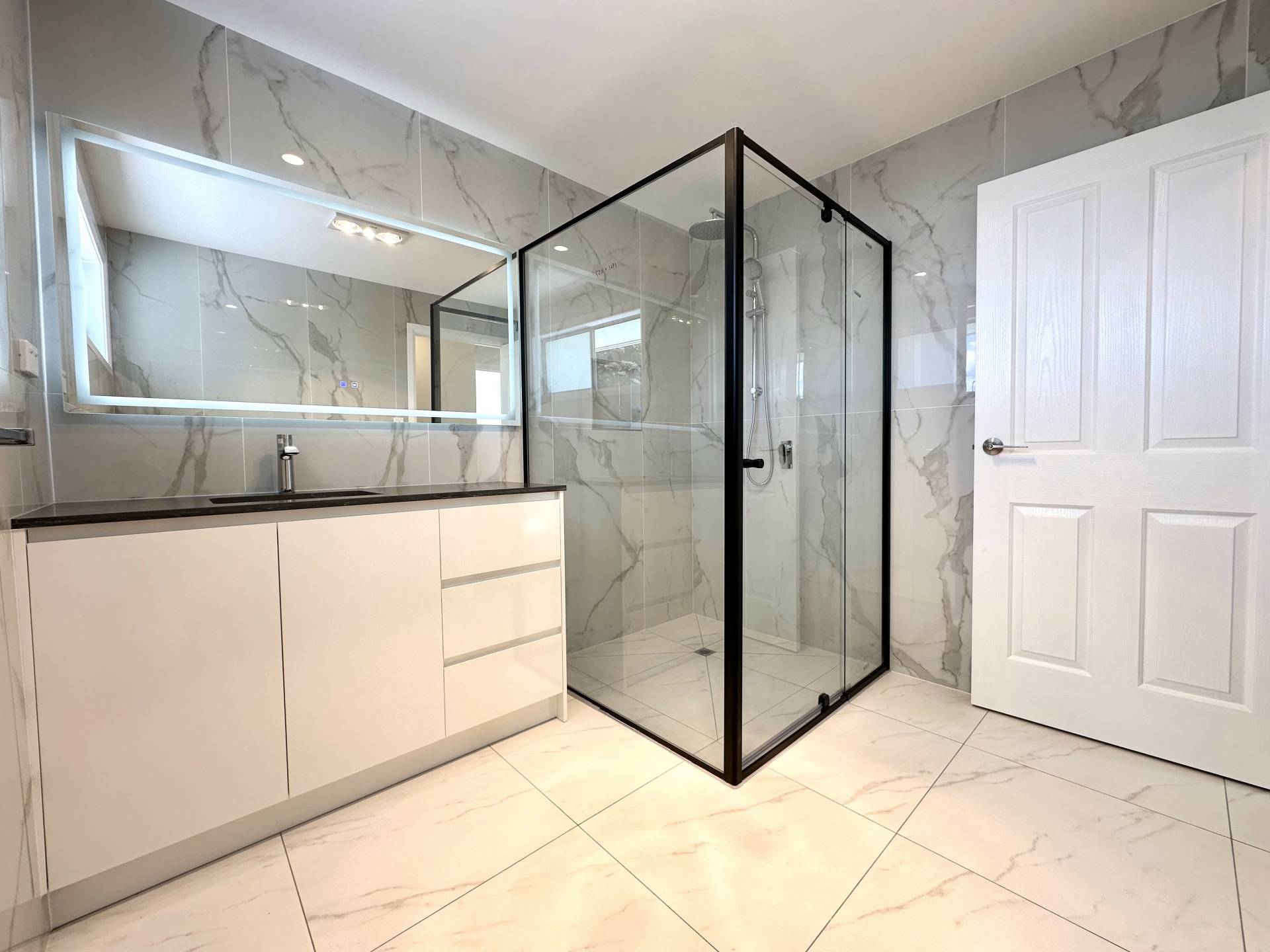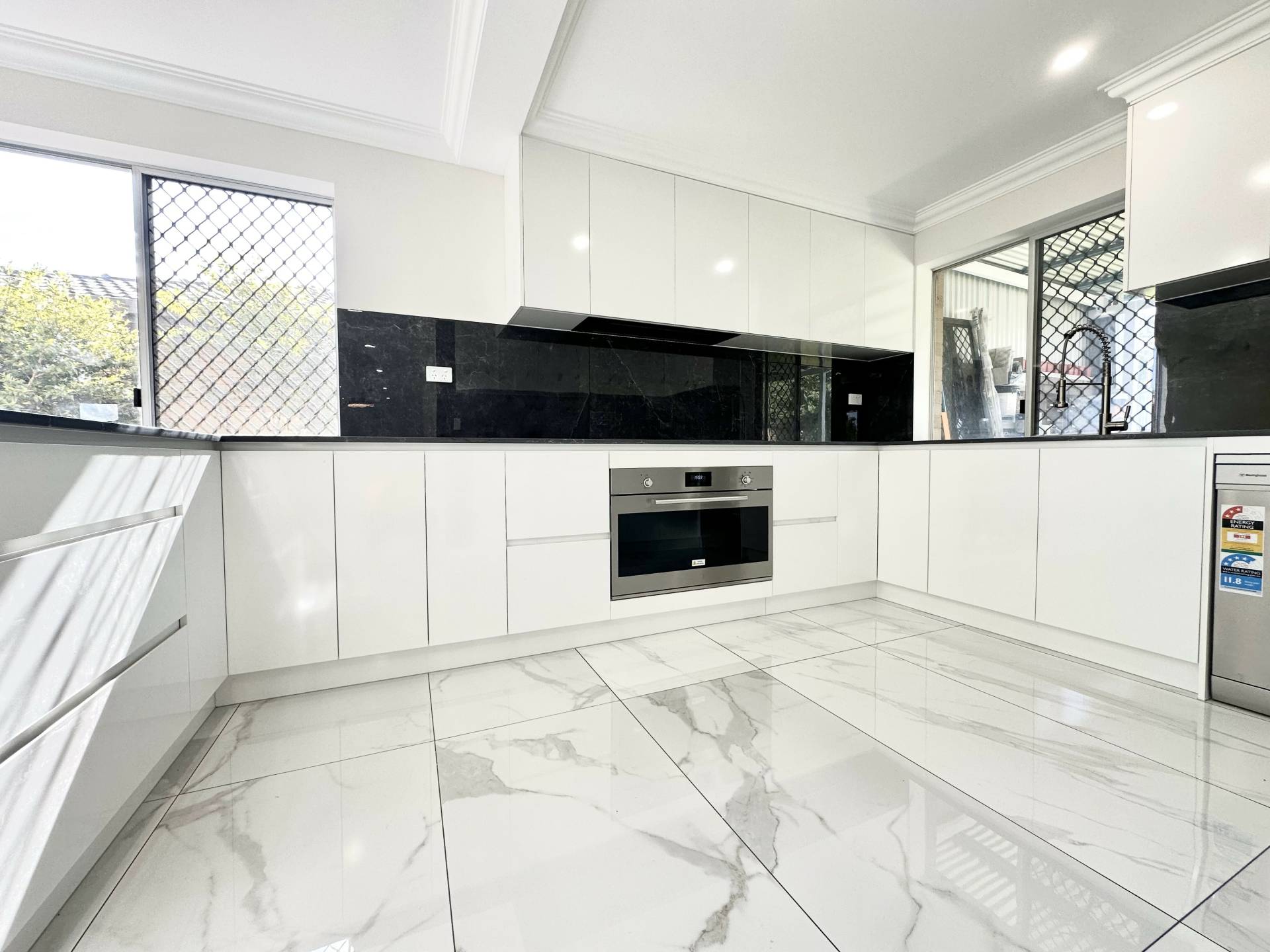 The brand-new kitchen has ample storage and bench space, with quality 20mm stone bench-tops, brand new Ilve 900mm under-bench oven, inverter cooktop and dishwasher. There is also access to the covered outdoor entertaining space and laundry and toilet.